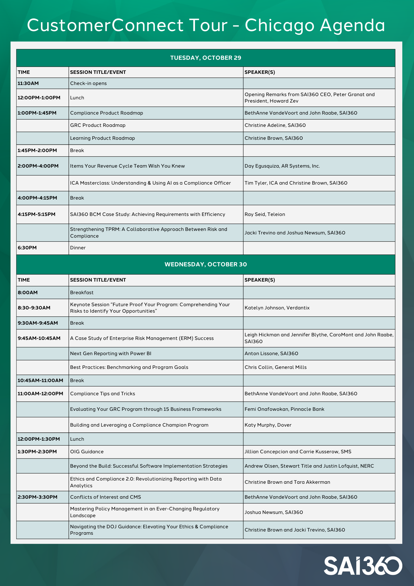 Join us for our exclusive Global CustomerConnect Tour 2024 in Chicago with other SAI360 customers!