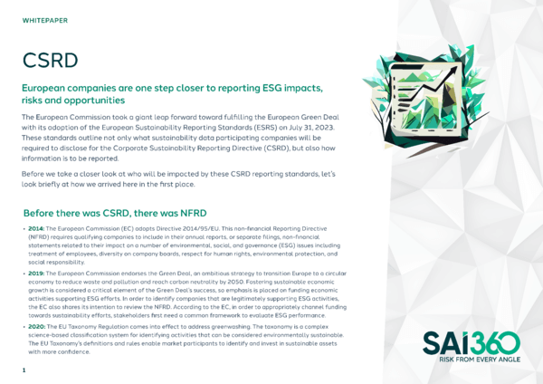 This whitepaper provides an overview of the ESRS standards and highlights key regulations that paved the way for CSRD.