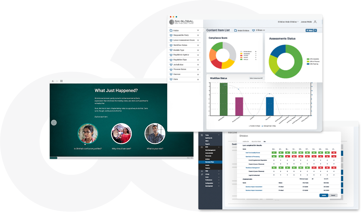 The SAI360 GRC Platform empowers organizations to balance ethics, risk, and compliance through an integrated solution that helps you manage all types of risks while building a risk-aware compliance program. By connecting key functions like compliance, risk, policy, and training with real-time insights and analytics, SAI360 enables you to adapt to evolving regulations while strengthening your culture of integrity.