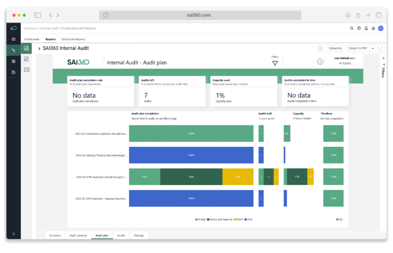 As part of the SAI360 GRC Platform, it connects audit with risk, compliance, and internal controls for greater visibility and impact. Our risk-based internal audit management software helps automate workflows, ensure full traceability, and deliver timely findings that strengthen assurance and stakeholder trust.