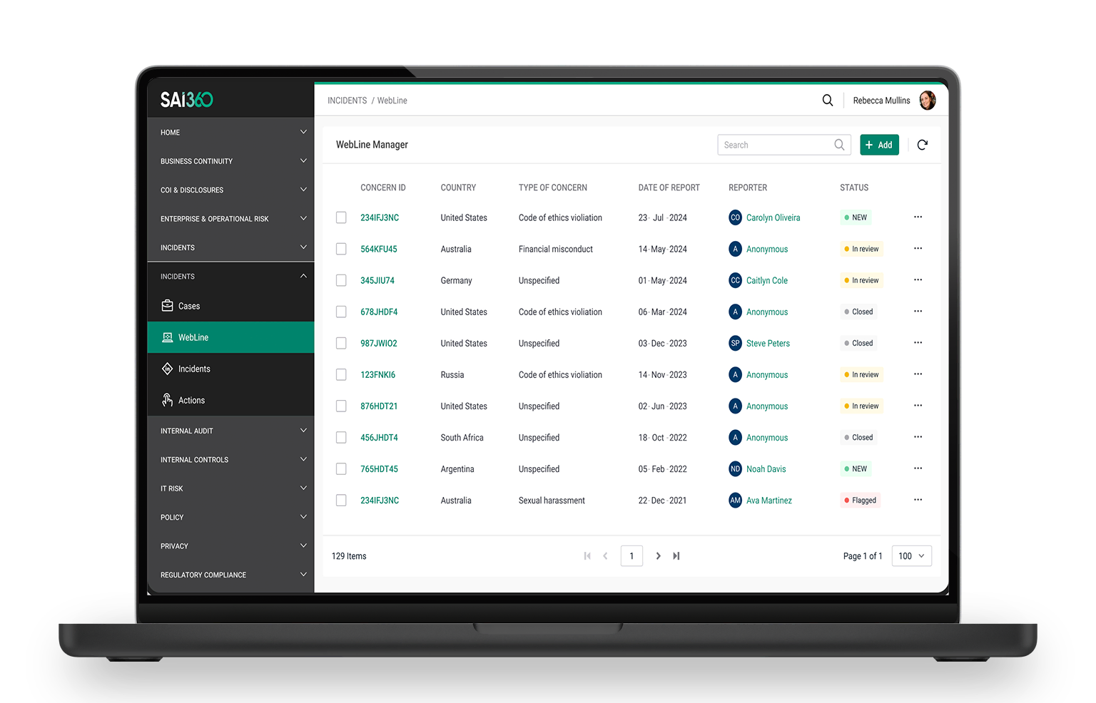 SAI360 turns every report into insight by connecting case data with policies, disclosures, and corrective actions.