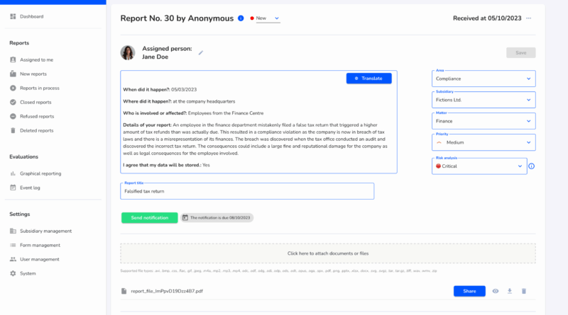 - Centralize every case—whether submitted by employees, managers, or third parties—for consistent follow-up